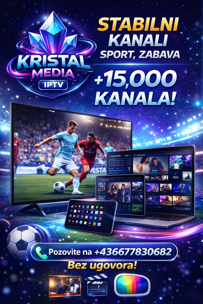 🎁 SPECIJALNA PROMOCIJA: Iskoristite popust na 12 meseci!Ne propustite priliku da osigurate najbolju zabavu za svoju porodicu po najpovoljnijim cenama na tržištu.”Brzo, pouzdano i 100% stabilno – to je Kristal Media garancija!”📞 Naručite odmah ili zatražite TEST!Spremni ste za promenu? Naš tim je tu da vam pomogne oko instalacije i pokretanja usluge u roku od par minuta.💬 Kontakt telefon / WhatsApp / Viber: ## +436677830682